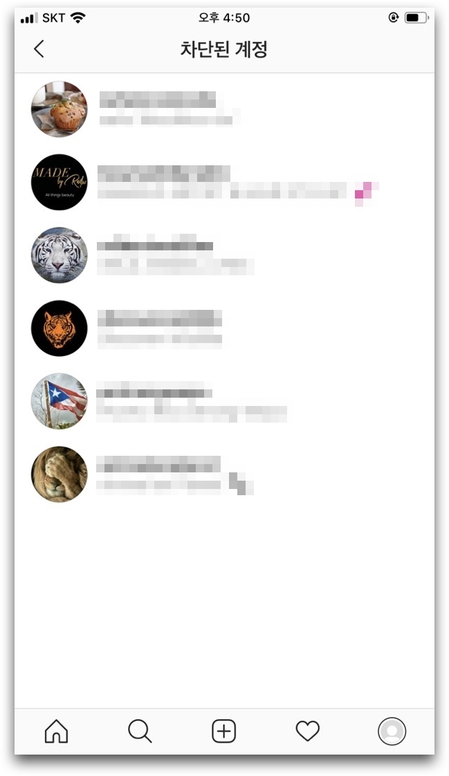사용자 자신이 인스타그램을 사용하면서 차단한 계정들은 인스타 아이디 검색에서 일일이 검색하며 확인할 수도 있지만 인스타그램 설정 페이지에서 차단한 리스트를 확인하고 해제 관리를 할 수 있다.